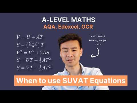 Dickson Wong, our award-winning tutor for Maths and Economics, walks you through when to use SUVAT equations in an A Level Maths exam paper. Dickson is experienced with a breadth of age groups and curriculums, having taught students from Year 3, GCSE and A level to university and professional level! 84% of Dickson’s A-level students achieve A* & As and 100% of his GCSE students achieve Grade 7 or above! Get your FREE personal statement template and applications cheatsheet 55% of our Oxbridge applicants GET IN! Why not join them? 👇 http://eepurl.com/hXzwzD CONTENT 00:00 When to use SUVAT equations 00:05 - Use SUVAT equations for constant acceleration problems in A-Level Maths. 02:32 - Understanding forces and acceleration in a connected particle system. 07:23 - Understanding tension and mass calculation in SUVAT equations. 09:46 - Using SUVAT equations to analyze projectile motion. 15:02 - The application of SUVAT equations in projectile motion. 17:29 - Understanding SUVAT equations for projectile motion's highest point. 21:58 - Understanding the two solutions in projectile motion using SUVAT equations. 24:01 - Understanding time and speed calculations using SUVAT equations. 28:16 - Always redraw diagrams to capture all information in exam questions. The Profs’ consultancy team have many years of experience advising students on how to get into some of the most competitive universities and degree programmes in the UK. Get in touch with our friendly team today to access our dedicated support. CONTACT US Call: +44 208 004 7639 Enquire (quickest response): https://www.theprofs.co.uk/contact-the-profs/ Email: enquiries@theprofs.co.uk FOLLOW US Facebook: https://www.facebook.com/TheProfs.co.uk Instagram: https://www.instagram.com/the.profs/ Twitter: https://twitter.com/TheProfsTuition LinkedIn: https://www.linkedin.com/company/the-profs-tuition Website: https://www.theprofs.co.uk RELATED BLOGS Top tips to help you achieve an A grade in A level Maths - https://www.theprofs.co.uk/student-resources/revision/how-to-get-an-a-in-a-level-maths/ How to get into the University of Cambridge for Maths - https://www.theprofs.co.uk/student-resources/university-applications/how-to-get-into-cambridge-for-maths/ A guide to transitioning from GCSE to A level: What you need to know - https://www.theprofs.co.uk/student-resources/revision/a-guide-to-transitioning-from-gcse-to-a-level-what-you-need-to-know/ Your guide to A Levels in 2024 - https://www.theprofs.co.uk/student-resources/revision/your-guide-to-a-levels-in-2024/